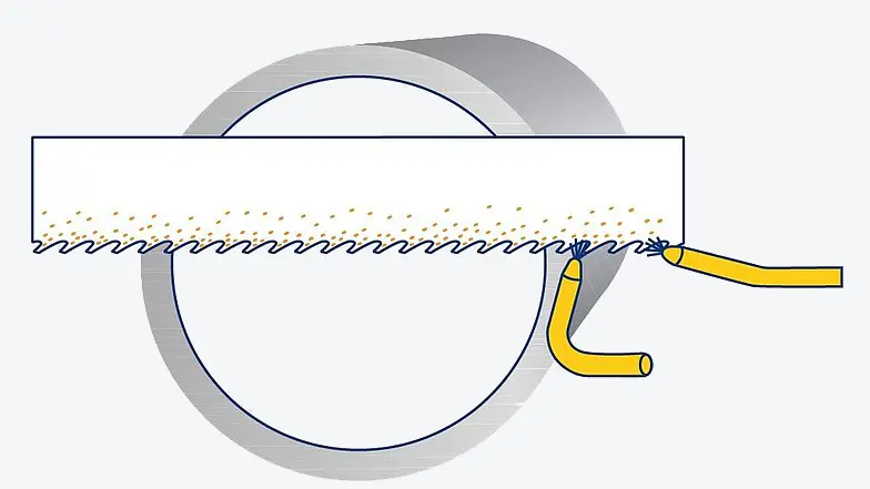Nanáša sa na zuby pílového pásu pred vstupom do rezu